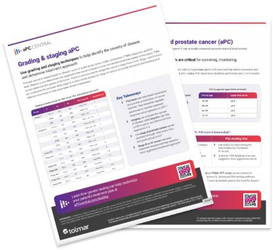 Download a printable quick-reference guide about diagnosing, grading, and staging advanced prostate cancer that you can use in-office.